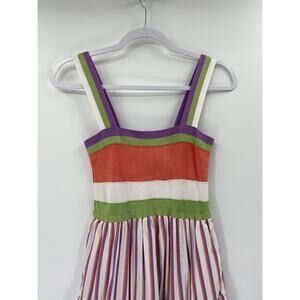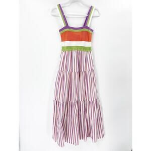 Tanya Taylor Claudia Printed Striped Sleeveless Empire Tiered Midi Dress Size XS