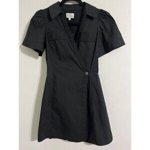 Tanya Taylor Cooper Black Mini Wrap Dress With Short Puff Sleeves size 2