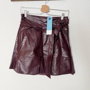 Tanya Taylor Courtney Belted Mini Vegan Leather Skirt