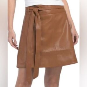 Tanya Taylor Courtney Vegan Leather Mini Skirt - Saddle, Size 6