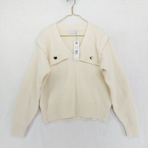 Elegant V-neck sweater by Tanya Taylor. Features ribbed texture and button details. Perfect for layering.
