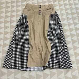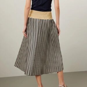 We are loving this playful mixed medium skirt by Tanya Taylor for taking your office look to the next level. Pair with your favorite black tee to make the gingham panels pop.