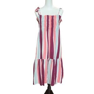 Tanya Taylor Dress Size XL Pink Stripe Smocked Leandra Sleeveless NWT Sundress