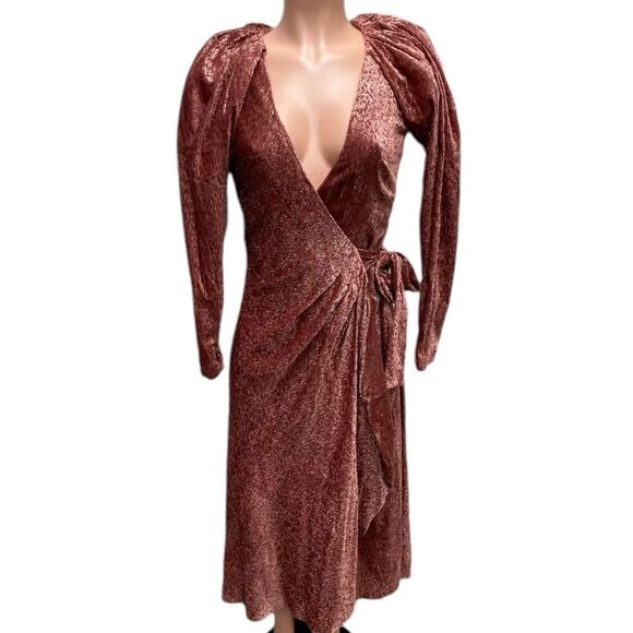 Tanya Taylor Dress WMNS 6 Puff Sleeve V-Neck Laureen Velvet Wrap Midi Festive