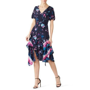 Watercolor flowers and trend tie dye collide on this Tanya Taylor A-line dress finished with a tiered twirl-worthy hem.