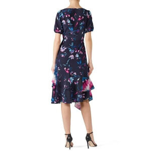 Blue floral (100% Silk). Hourglass. Short sleeves. V-neckline. Side zipper closure. Fully lined.