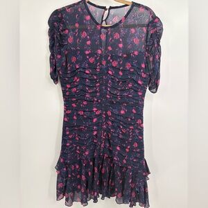 Tanya Taylor Falling Floral Carti silk ruffle boho mini Dress Size 8