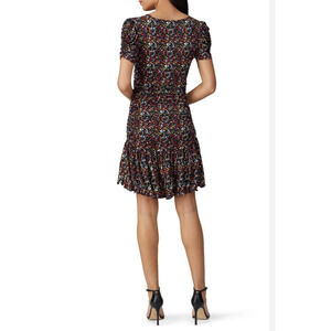 Tanya Taylor Floral Puff Sleeve Mini Dress M Ruffle Hem Drop Waist