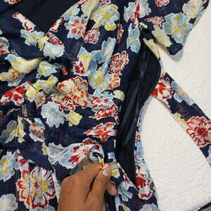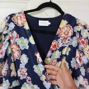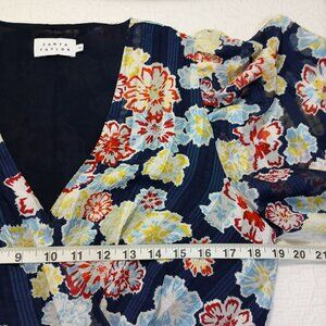 Tanya Taylor Floral Wrap Dress Navy Blue Multicolor Short Sleeve Size 10 Womens