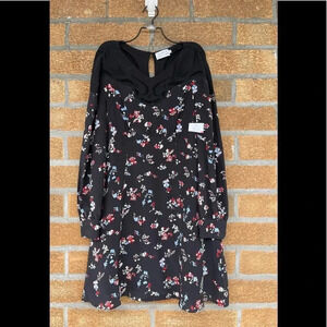 Black floral printed silk (100% Silk). Empire. Long sleeves. V-neckline. Hidden back zipper with exposed button closure. Fully lined.