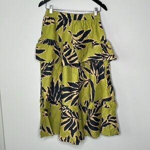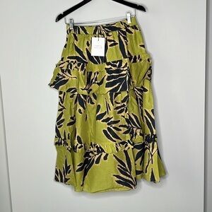 Tanya Taylor Hazelle Tiered 100% Cotton Midi-skirt in Avocado Mult Size XS NWT!