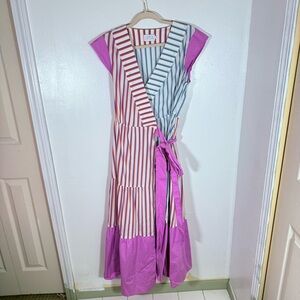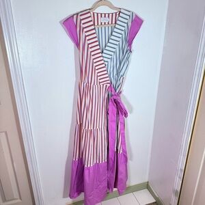 Tanya Taylor Jasmine Tie Waist Stripe Maxi Dress Orchid Strip Preppy Coastal