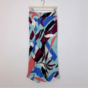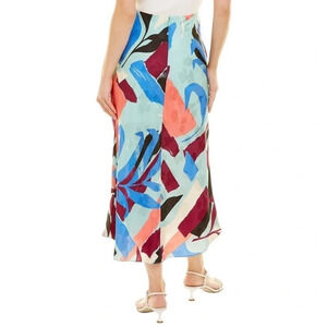 Tanya Taylor Kiarah Abstract Watercolor Silk Satin Midi Skirt 4 Multicolor NWT