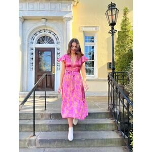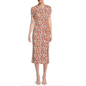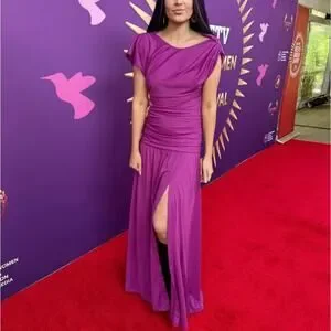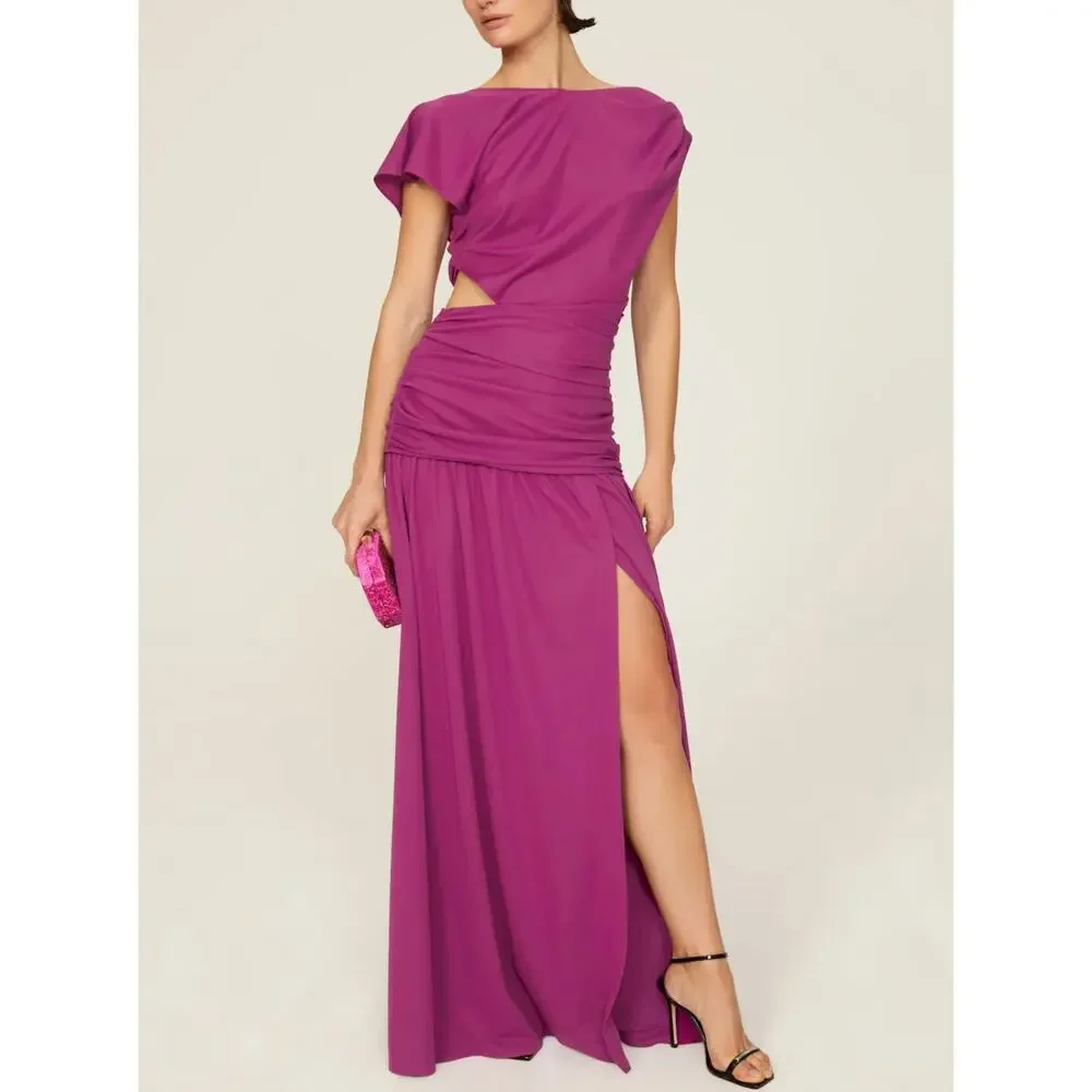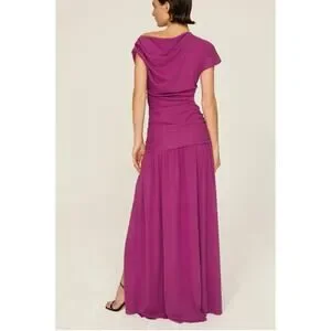 Tanya Taylor Magenta Ruched Gown SIZE 4 Cut Out Asymmetric Slit Designer $600