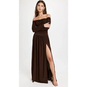 Tanya Taylor Marla Ruched Maxi Fit and Flare Dress Mocha Size 6