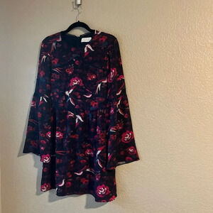 Tanya Taylor Navra Kimono Silk Dress Floral Babydoll Bell Sleeve 6 Lined