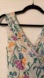 Beautiful dress in a fresh, summery floral print. Flattering design. Perfect for any special occasion. There is a very faint discoloration spot in the skirt. So hard to see.