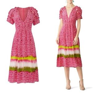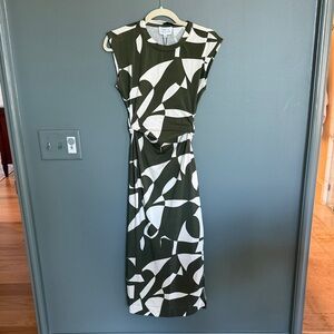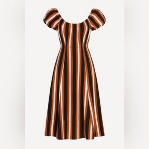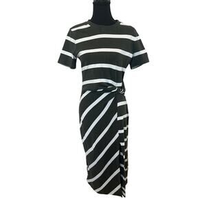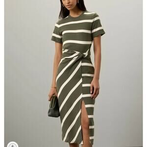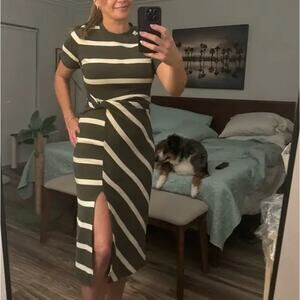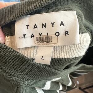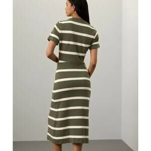 Tanya Taylor Olive Striped Dress LARGE Cotton Knit Work Career Designer $355