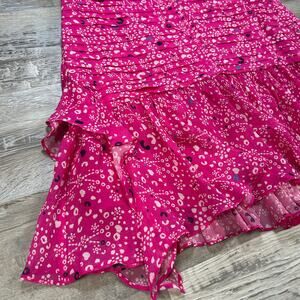 Tanya Taylor Pink Silk Mini Skirt Ruffle Hem Ruched Size 8