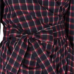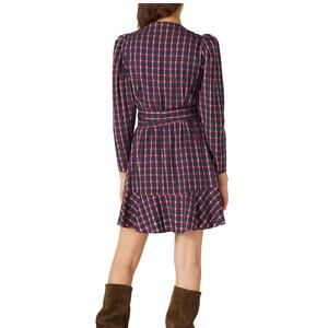 Tanya Taylor Plaid Mini Wrap Dress Blue Purple Size 4 Designer Romantic $475
