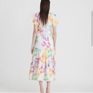 Tanya Taylor Rhett Watercolor Floral-Print Silk Dress With Flaws.