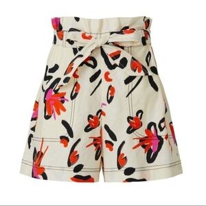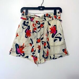 Tanya Taylor Quinn Floral Paperbag Linen Blend Shorts