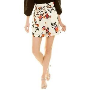 Tanya Taylor Quinn Size 6 Paperbag Linen Blend Shorts Floral MSRP $275