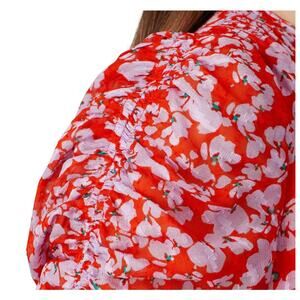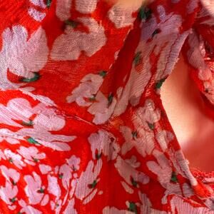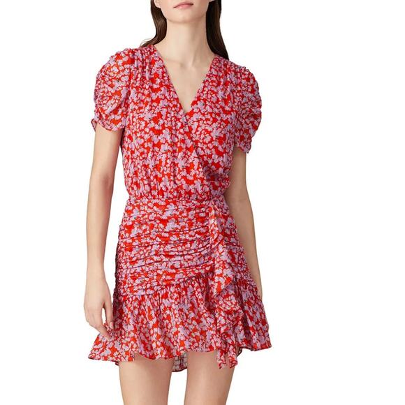 Tanya Taylor Red Floral Mini Wrap Dress Size 4 Silk Chiffon Ruched Designer $500