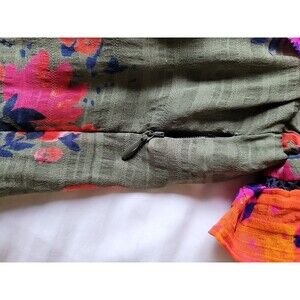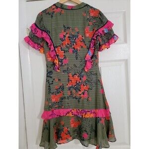 Tanya Taylor Rhett Falling Floral Print Silk Short Dress Size 2 Army Green Pink