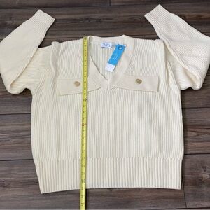 Tanya Taylor Rhodes Knit Sweater. New with tags. A beautiful, classy cream colored sweater with gold accent buttons on the front. Please see pictures for more details and measurements.
