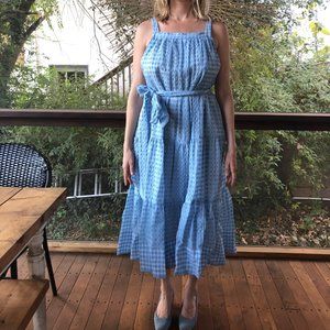 Beautiful Tanya Taylor "Savannah Crinkled Gingham Trapeze Dress" in light blue. Worn once, perfect condition. Size Medium. Pockets.