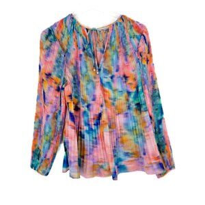 Tanya Taylor Shanalee Top Shirt Accordion Pleated Long Sleeve Size Small S EUC