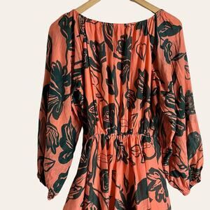 Tanya Taylor Shay Floral Print Mini Dress in Shell Pink/Deep Sea Size XS