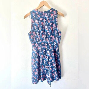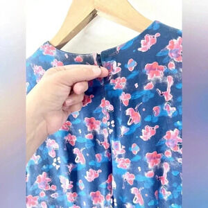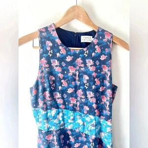 Tanya Taylor Silk Blue Floral Sleeveless Asymmetrical Hem Mixed Pattern Dress