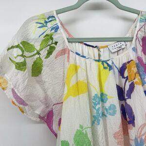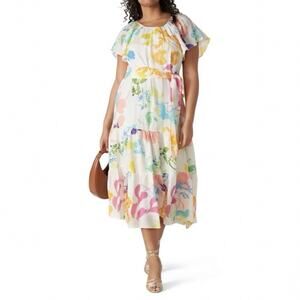Tanya Taylor Size 2 Silk Midi Dress Pastel Floral Puff Sleeve Tiered Ruffle