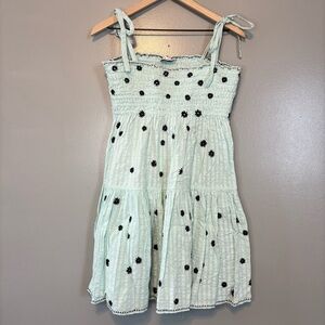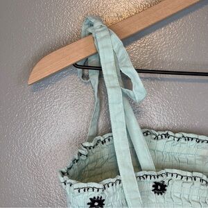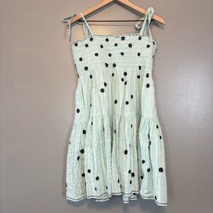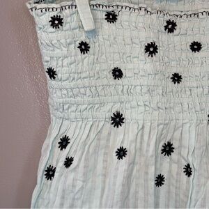 Tanya Taylor Small Lina Smocked Embroidered Cotton Mini Dress Swim Coverup Teal