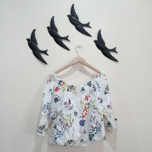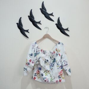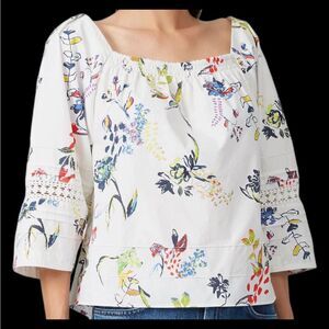 Tanya Taylor Stassi Floral Crochet Cotton Peasant Blouse - Size 8