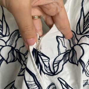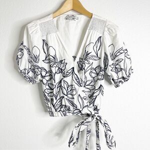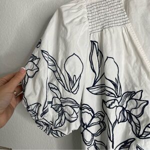 Tanya Taylor Top White & Navy Embroidered Floral Wrap Style Size 6