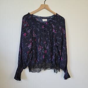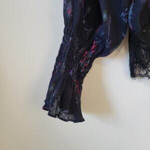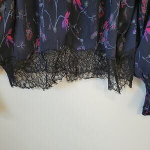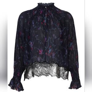 Elasticized detail at the neck and sleeves and scalloped eyelash lace at the hem bring Victorian romance to this floral Tanya Taylor top.