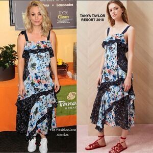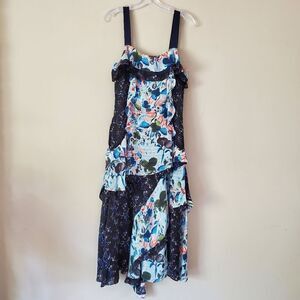 Tanya Taylor Water color Floral-Print Sleeveless Tiered Midi Dress Size 8