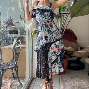 Tanya Taylor Water color Floral-Print Tiered Midi Dress Size 8 Lagenlook Boho