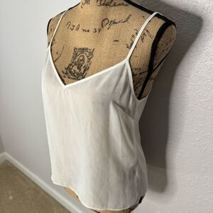 Tanya Taylor White Crepe Tank Top Size 6 Spaghetti Strap V Neck Classic Preppy