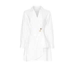 Tanya Taylor Winnie White Long Sleeve Poplin Wrap Shirt Mini Dress Size 6