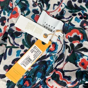 Tanya Taylor Women's M/L Grey And Floral Cadence Wool-Blend Robe Coat NWT $765 Spring Trench Colorful Fashion Week Paris London Designer Quality Red White Blue Grey Garden Art to Wear USA Americana Patriotic Red White Blue