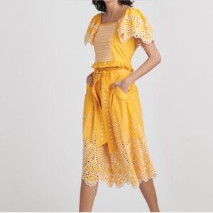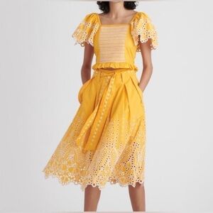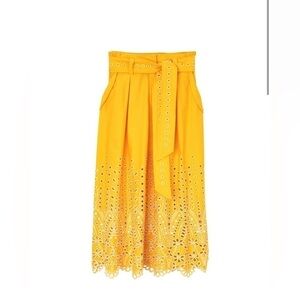Tanya Taylor Yellow Eyelet Belted Skirt Size 18