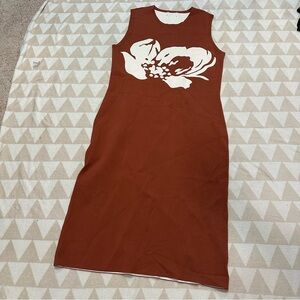 Tanya Taylor brown flower sleeveless midi dress stretch