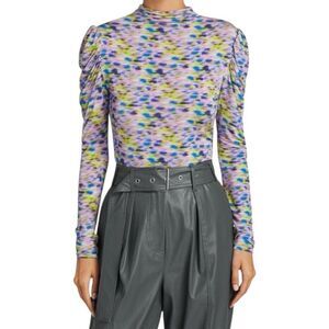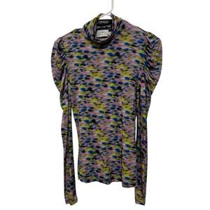 Tanya Taylor Adonica Long-Sleeve Turtleneck Printed Top Size XS Slinky BodyCon