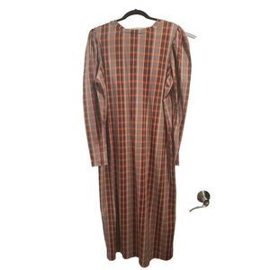 Tanya Taylor Nancy Dress Gray Burgundy Pink Plaid MSRP$295 Organic Cotton 1X NWT