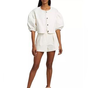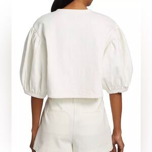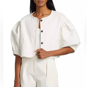 Crafted of stretch-cotton fabrication, the Samantha jacket by Tanya Taylor is designed in a cropped style with elegant puff-sleeves.