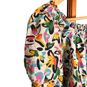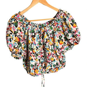 Tanya Taylor's Womens crop top with balloon sleeves S/M art to wear vacation